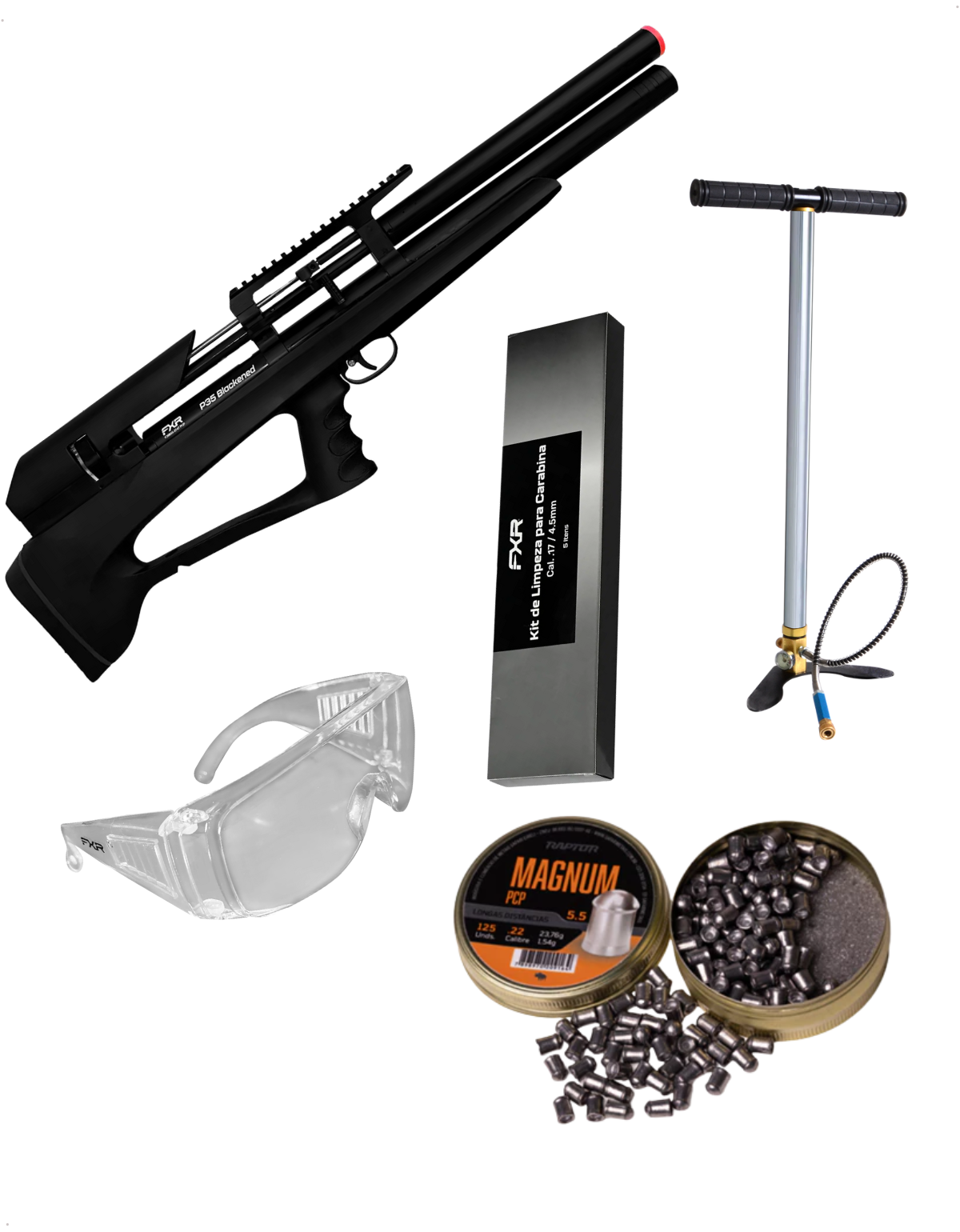 Pronto para uso: arma + manutenção + recarga + acessórios essenciais.