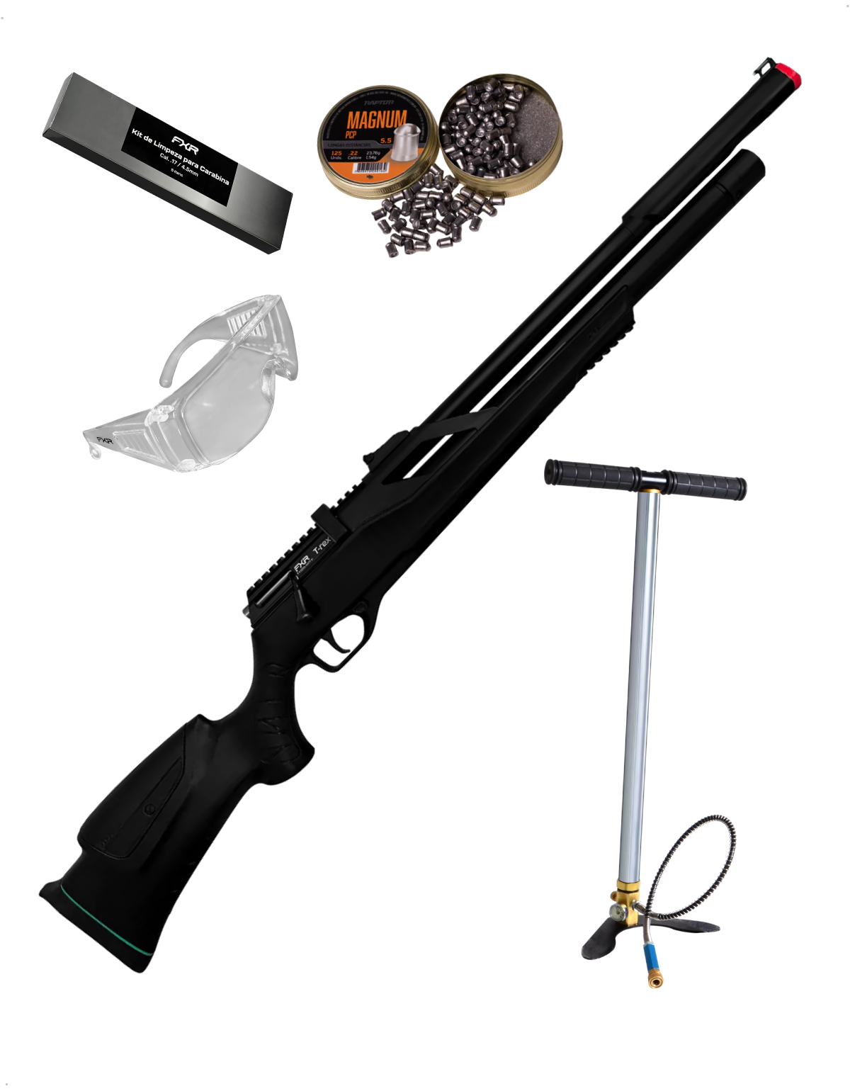 Equipada com cilindro de 230 cc (250 bar) e manômetro integrado, entrega mais de 90 tiros úteis por recarga. Sua construção combina alumínio com coronha em polímero de alta densidade, garantindo robustez e ergonomia.